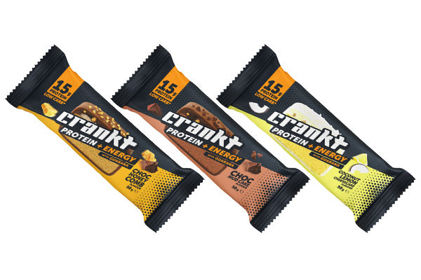 The Crankt Protein + Energy Bar combines 15g high-quality protein, sustained natural energy caffeine boost from guarana and a delicious taste to keep you fuelled, focused and ready for anything.